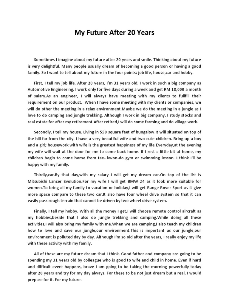 May that be becoming a mom dad librarian or even an actoractress. Where I See Myself In 20 Years Essay. My birthday is on 4th April.