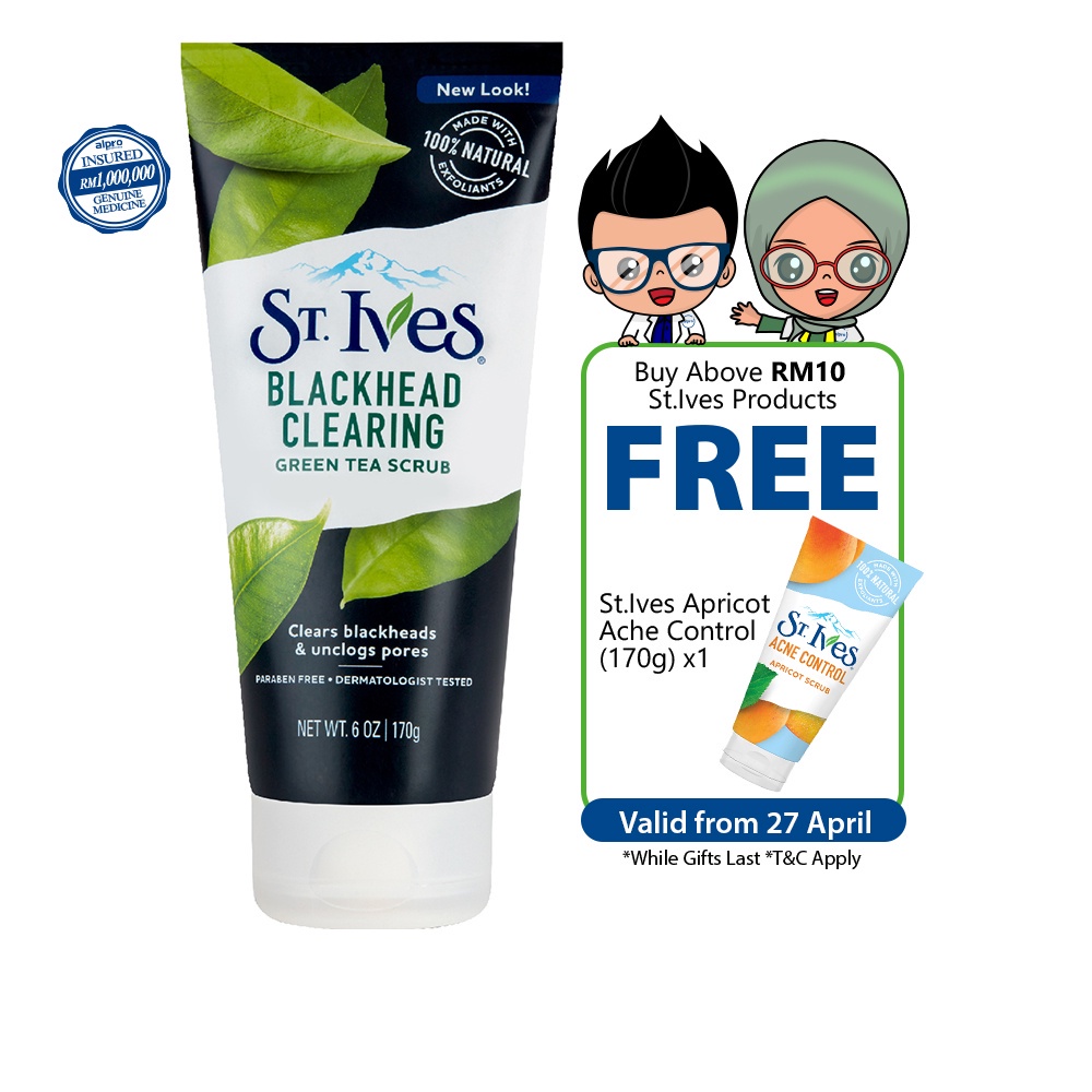 Problem skin has met its match. Salicylic acid packs a punch in this dermatologist-tested blackhead-tackling green tea face scrub that unclogs pores and calms redness for glowing bump-free skin. In stock From Canadas 1 scrub brand this scrub contains 100 naturally sourced exfoliant and green tea extract. GARNIER Bright Complete Brightening Scrub 50mL 8900 14 EXTRA P250 OFF MEGAN Poreless White Sunflower Facial Scrub 50G 9900 0 EXTRA P250 OFF ST IVES Face Scrub Blackhead Clearing Green Tea 6oz 27400 11 EXTRA P250 OFF NEUTROGENA Deep Clean Blackhead Eliminating Daily Scrub 100g 29900 15 EXTRA P250 OFF ESFOLIO Snail Peeling. Garanta Já as Ofertas. Ives Blackhead Clearing Face Green Tea Scrub - 170gBuy Blackhead Clearing Green Tea Scrub 170g online at Watsons Malaysia. 683 Write a review.
